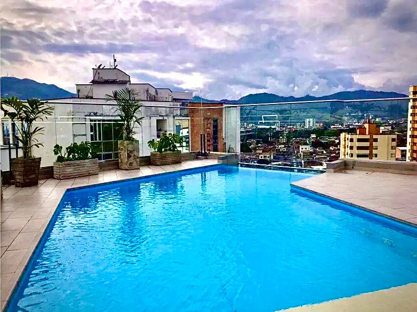 Welcome to our luxurious one-bedroom apartment in Pereira's Zona Rosa, ideal for digital nomads. With stunning 180 degree panoramic views, a dedicated workspace with an auxiliary monitor, high-speed internet, and a 70-inch smart TV, relax and work in comfort. Enjoy morning meditations in your personal Zen garden or unwind in the rooftop pool. Safety is ensured with 24-hour security and a personal safe. A perfect space to work and leisure.