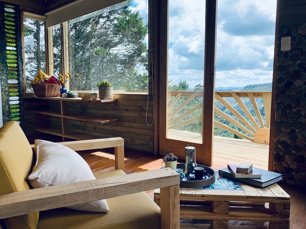 Discover this beautiful Glamping at just 45 minutes from Medellin. At our ecolodge, you can book coffee, cacao, Comuna 13 & Guatapé tours as well as massages & transportation. Our staff is available until 4:00 AM, taxis can be arranged to bring you directly to your cabin from the airport. We run our own Skyline Foundation planting native trees, teaching yoga, music & English classes to local schools. Our water supply mainly comes from purified rain and the project runs on solar energy 🍀❤️