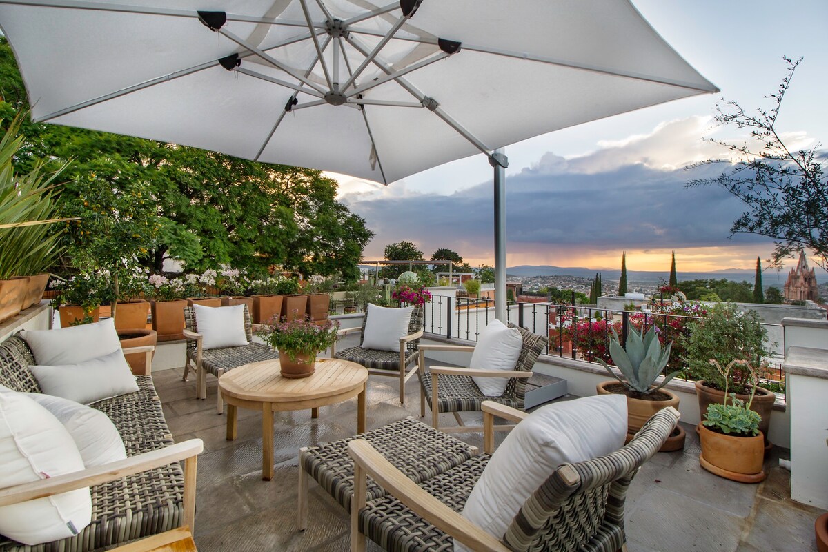 Luxurious Colonial Villa located in the heart of the magical town of San Miguel de Allende, just two streets from the Parroquia by flat walk. Daily maid service, swimming pool. • Luxurious living space & gloriously comfortable bedrooms • Rooftop terrace with breath-taking city views • Outside dinning space • Swimming pool • Onsite secured free parking * Massages Service * Continental breakfast (Cook Breakfast is an Extra) * AC Air conditioning in all rooms