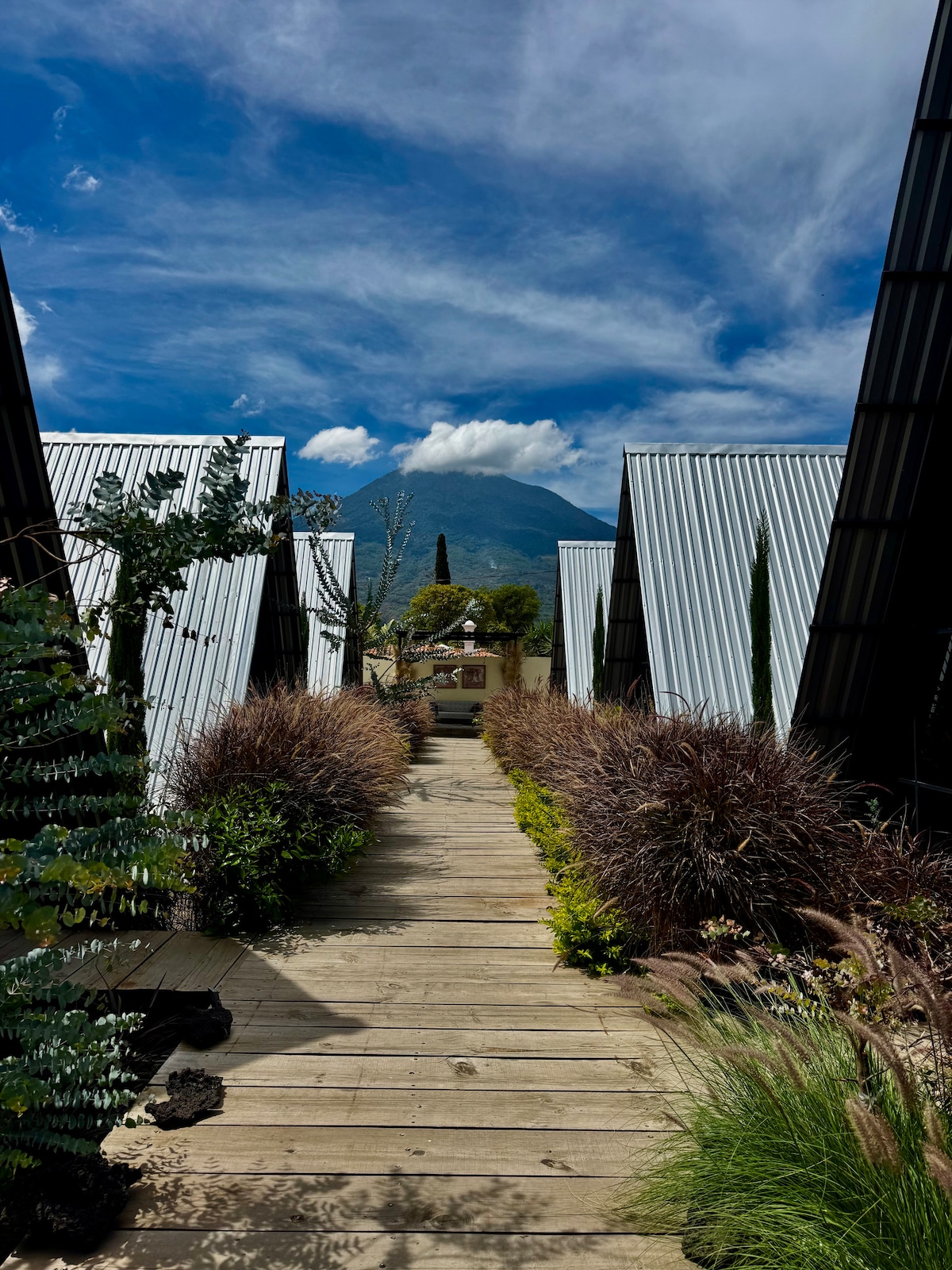 Escápate a una acogedora cabaña tipo A-frame al sur de Antigua Guatemala, con una vista increíble al volcán de Agua (Hunahpú). Cada cabaña está inspirada en la esencia del país: Fuego, Agua y Acatenango, o en sus granos más emblemáticos: Cacao, Maíz y Café. Un espacio único, colorido y lleno de carácter para descansar, explorar y vivir Guatemala. 🌋