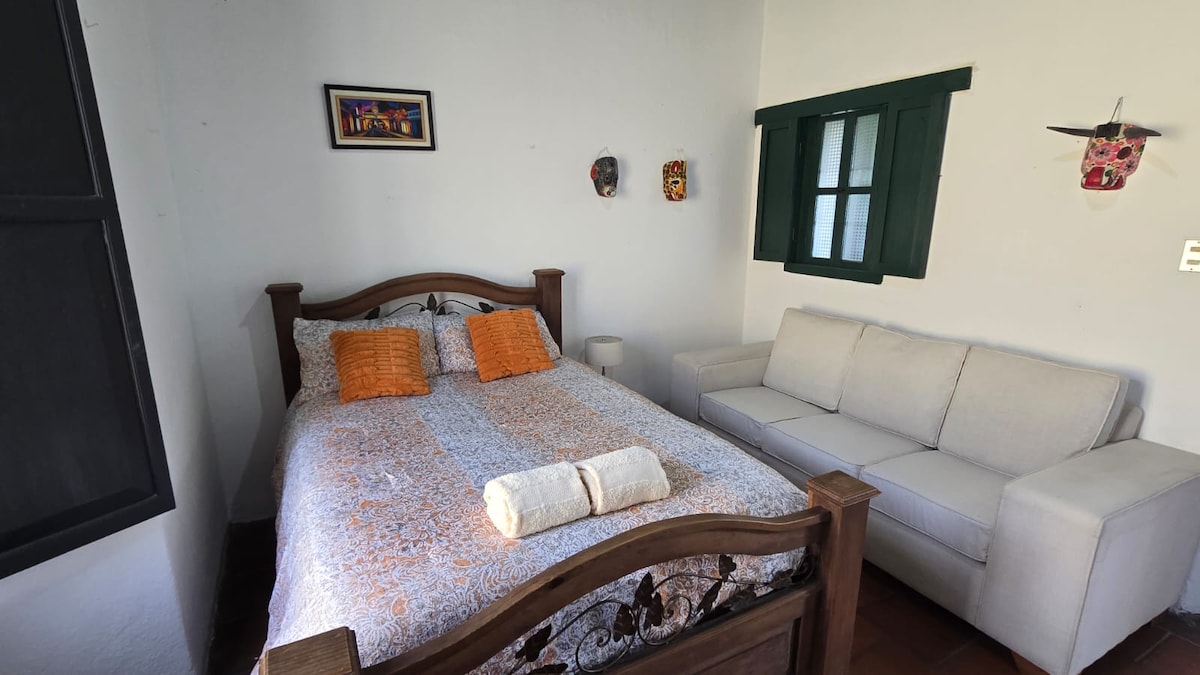 A perfect place to get off the beaten path, this country apartment is in a lovely Indigenous village 20 minutes outside of Antigua. Beautiful views of the countryside and volcanos, the area is safe and peaceful to explore. Secure parking inside the property with your own private entrance and cozy, comfortable apartment. Ten minutes from Cervecería Catorce or Tribu, and 20 minutes from Finca San Cayetano.