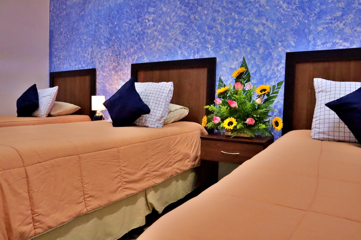 Spacious and comfortable room at El Carmen Hotel located in the center of the city just 1.5 blocks from the central park The room has 2 double beds, a private bathroom, cable TV, hot water, air conditioning, toiletries, and access to our rooftop with spectacular views of Antigua. Free breakfast and parking are included. *BECAUSE THIS IS A HOTEL ROOM YOU WILL BE ASSIGNED ANY OF THE DIFFERENT ROOMS IN THE PICTURES*