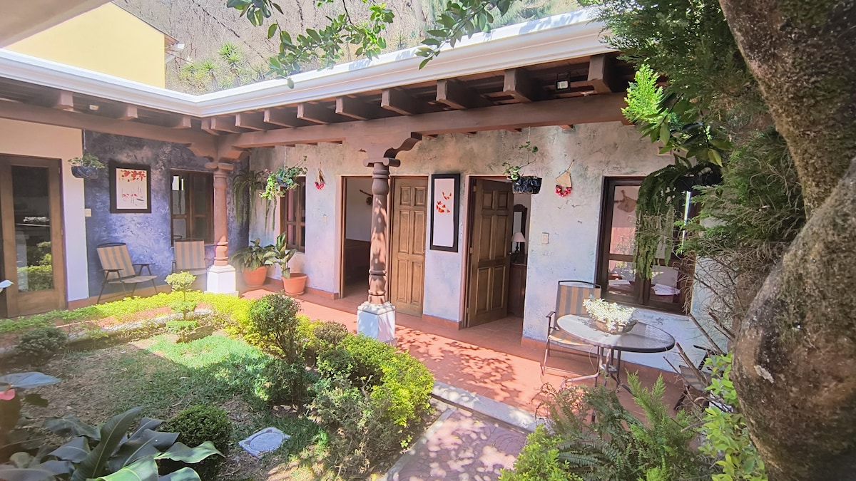 A Hidden Oasis 4 blocks from the Central Park. There's no place like this in Antigua. You may not want to leave! Sleeps 3. Fully equipped & comes with 1 secure parking space & very large TV screen. Best WiFi in Antigua. You'll be living in a lush & expansive garden with a view of the Volcano Agua that can't be beat. 7 other Casitas share this beautiful setting..