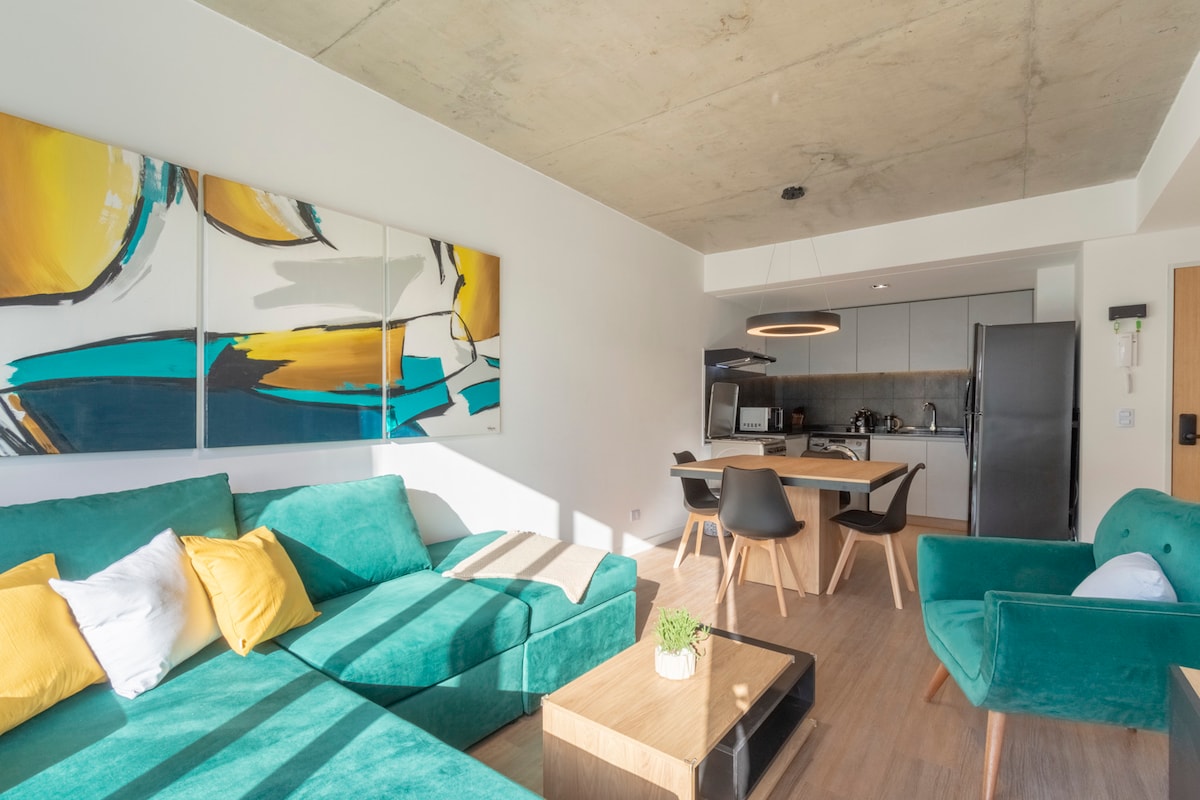 Domus Olivos harbour premium apt, riverside views, bird sounds, lots of natural light and green area. 54sqm distributed in an open floor, integrated kitchen, living room, Queen bed, and terraced dining room balcony Super WIFI 600 Mb, Full Amenities, decoration and furniture of category from Indonesia, Bali & India. 24 hour security - area guarded by the Navy and since is located a few meters from the presidencial house is one of the safest area in the city.