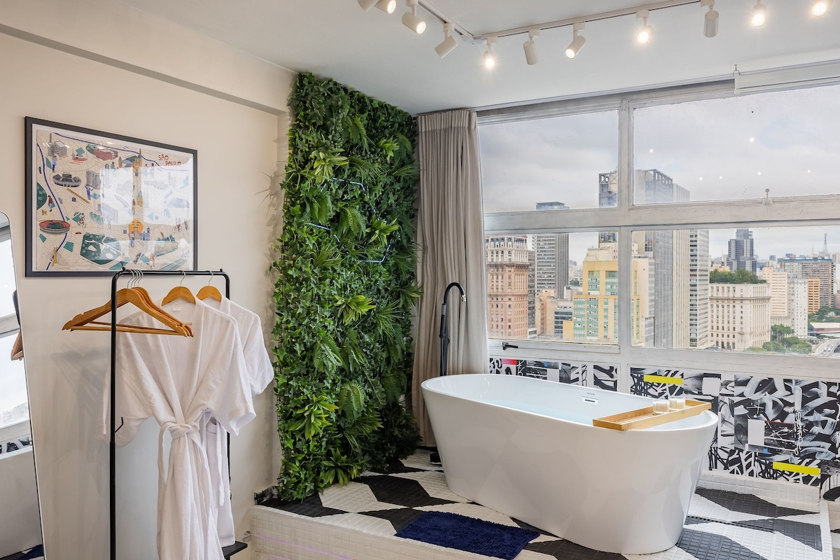 Estúdio espaçoso com muito design, arquitetura e a melhor vista de São Paulo. Loft completo! Com cama queen, closet, ar condicionado silencioso, cozinha completa, home office, WI-FI, TV 55” e uma belíssima banheira de imersão, de onde pode apreciar o seu drink preferido e curtir uma vista apaixonante. São Paulo toda estará há poucos minutos de você. Acesse o metrô andando apenas 200m. Reserve com tranquilidade! Proporcionaremos uma excelente hospedagem e uma ótima experiência!