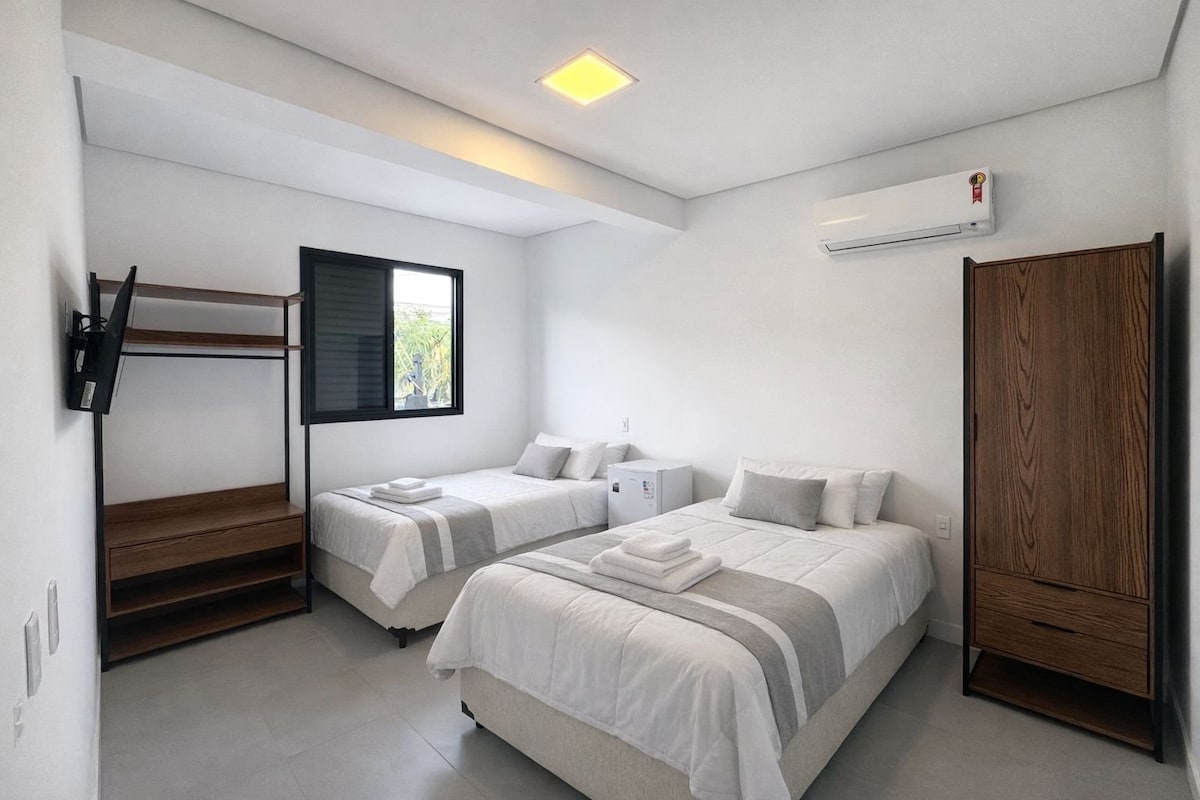 ESPAÇO EXCLUSIVO PARA O SEU USO 🌿 Região residencial, tranquila e segura, com mercados, padarias e comércios próximos. 🛌 Acomodação para até 4 pessoas • 1 cama queen • 2 colchões de solteiro (sofá bicama que se transforma em duas camas individuais) ❄️ Ar-condicionado em todos os ambientes 📶 Wi-Fi rápido (300 Mbps) 📺 Smart TV 🍳 Cozinha americana compacta e equipada 🛏️ Enxoval completo (roupa de cama e toalhas) 👕 Ferro de passar roupa 🔐O acesso é totalmente feito por senha eletrônica.