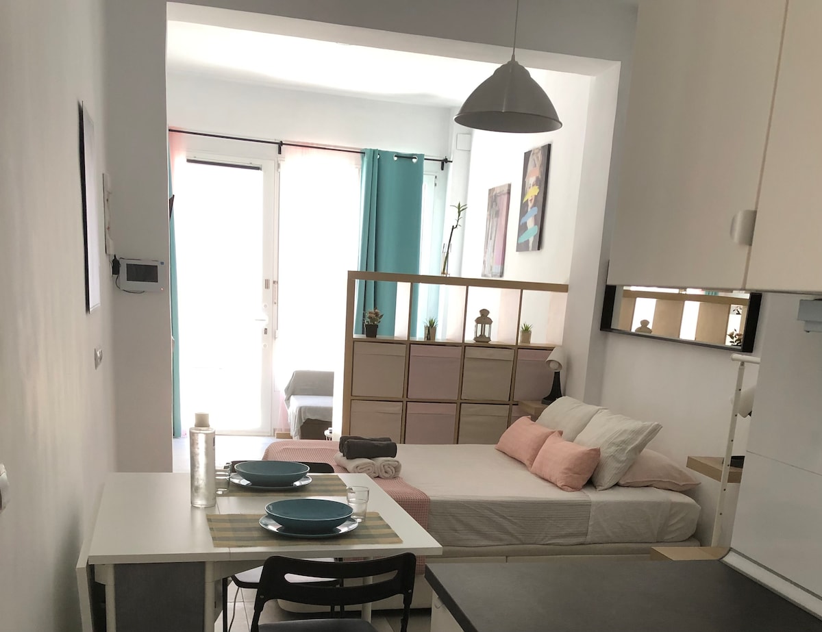 “Vine” apartment is located in Madrid center, off Gran Via, on a quiet street in a new building with elevator. It is nature-inspired, bright & modern, has WiFi, is fully equipped and is very close to restaurants, tapas, the Metro, shops & galleries. Best for a single, couples or couples with a kid! Pets are invited happily!!! The apartment is located in a new buliding, with an elevator! It is modern designed, with lots of greenery, themed to its name, Vine. A huge window along the length of the whole apartment overlooks a beautiful private garden. The apartment consists of a bedroom with a double bed, a living area with a single pull-out sofa, kitchen and bathroom. It has WiFi and is fully equipped, including a washing machine, TV, air conditioning, and Nespresso coffee maker - all just ready for your comfort and enjoyment! The apartment is a studio open space apartment - and it's all yours to enjoy! There are no areas in the apartment that you cannot use or access! We love hosting, but also respect our guests' privacy! We are here for you as much as you would like! Located just off Gran Via in lively buzzing Malasana neighborhood with its great range of authentic cafes, tapas & bars. Huge Zara Primark & Mango are minutes away. Best Madrid sites like Royal Palace, Puerta del Sol & Museums are in walking distance The Central Metro Station Gran Via is a 2 minute walk from the apartment. From there you can take the metro to anywhere you want in Madrid and also to all the train stations that will take you out of Madrid to the rest of Spain. If you come by car, a big parking lot is located at Barco 1, Madrid, just a minute from the apartment. There is also a bicycle-rental station close by. A hosting kit of water, soda, milk, coffee, tea and sweetners will be waiting to welcome you :-)
