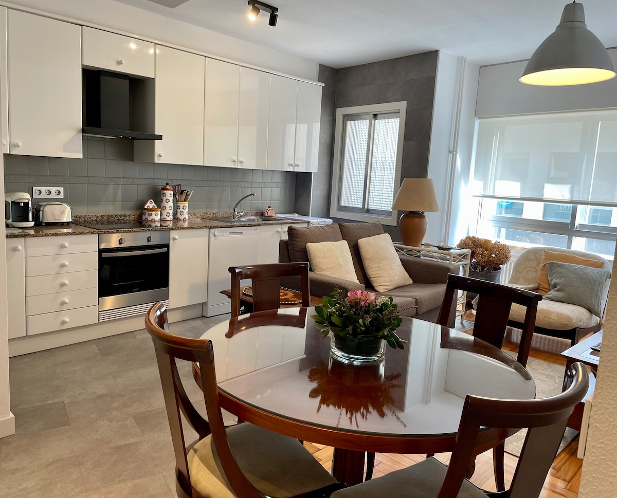 Beautiful exterior apartment with 2 bedrooms and 2 full bathrooms, one of the bedrooms with a private bathroom, with a fully equipped kitchenette and a living-dining room. Seventh floor with elevator. Heating and parking space in the building. It has Wi-Fi and 2 TVs. Ideal for couples and families. Located in the Traviesas area, very close to Plaza América, one of the lungs of Vigo. Well connected and with all services at hand. Quiet area but with a lot of life.