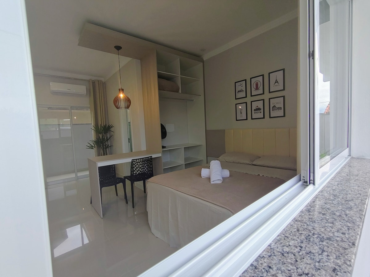 Experience the gastronomic district with comfort and more: 🛏️ Spacious bedroom with storage and A/C (hot & cold) 🛜 Fast & reliable WIFI - perfect for distance work 🍽️ Newly renovated and modern flat with a fully equipped kitchen 🚶Prime location next to UDESC campus and few meters away from the gastronomic district 🚗 Free parking on the property and only 4km away to the city centre 🧖♀️ Towels and linen included 🌳 Close to the seaside and parks Book now for an unforgettable stay!