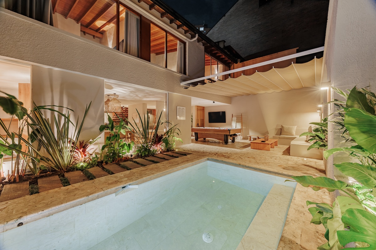 • Modern, private Suite in apartment complex • Private Hot Tub • Amazing location in heart of Poblado: "Oasis in the middle of the best part of the city, walking distance to everything” • 5 mins walk to best restaurants, cafes, malls. 22 mins walk to Poblado and Lleras Park • A/C • 2 Beds, 2 Baths • High speed 200 Mb WiFi • Loads of nature around • Transparent prices: No service or cleaning fee • On site 24/7 staff • Pool + Hot Tub in common areas, but you have your private Hot Tub in your suite