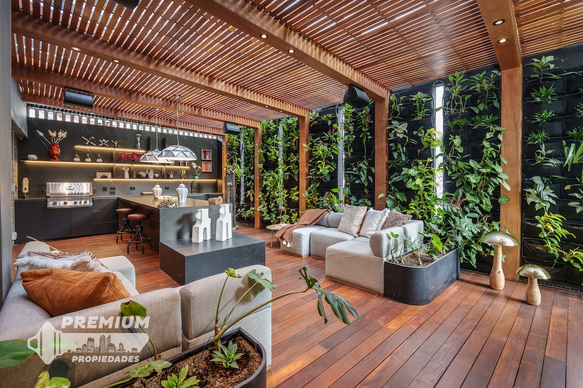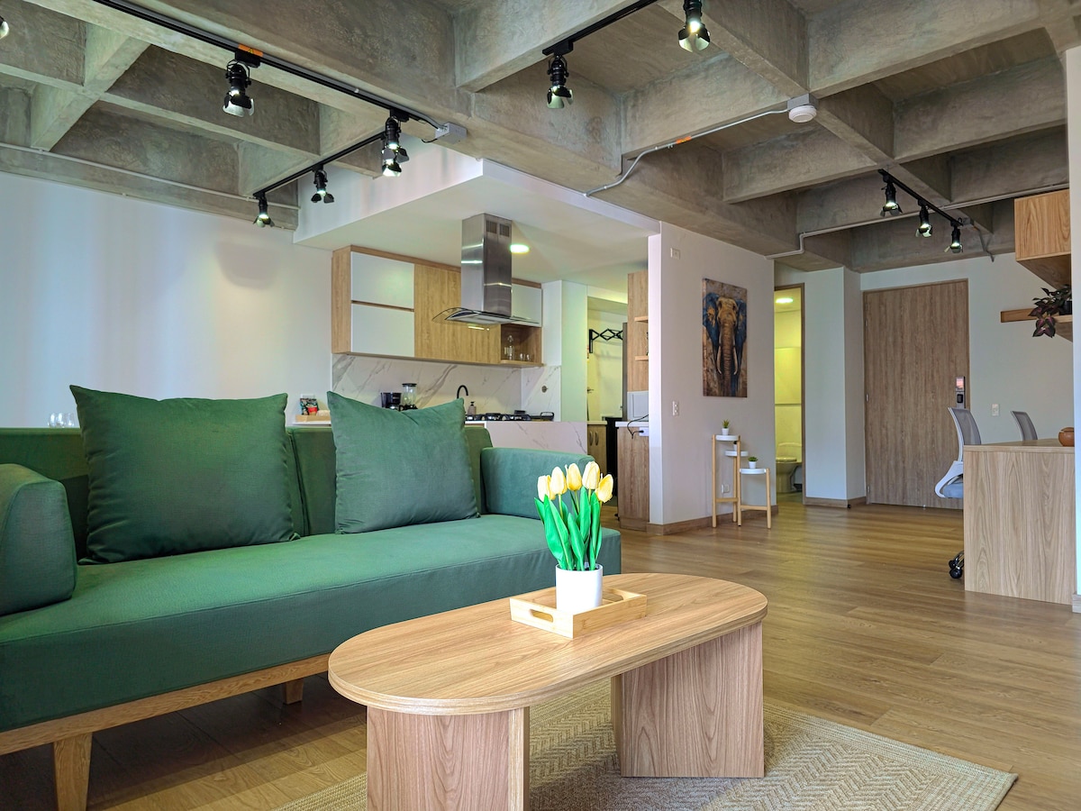 Stop looking, here you have all you need: -All brand-new apt with great interior design -Dedicated work space 27" monitor and fast internet -Balcony with great view -Unbeatable location in the lower area of Poblado, you can do everything by walk, near to Provenza and Lleras Park, metro station, supermarkets, pharmacy, coworking, cafes and lots of restaurants. -Cool rooftop on the building -AC Room and living -Huge 75" and 65" Smart TVs -Washer/dryer -Smart lock for self check-in -24/7 Security