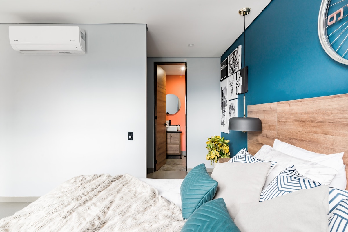 Stop looking, here you have all you need: -High-speed internet -Design inspired by local Colombian artists -Breathtaking views of Medellín (trust me, worthwhile to stay here) -13th floor -Unbeatable location in Poblado near to Provenza and Lleras Park -Spacious living area -A/C in the bedroom -Smart TV x 2 -Fully equipped kitchen -Washer/dryer -Gym -All restaurants you can imagine just a few steps away -Private parking lot -Smart lock for self check-in -24/7 Security