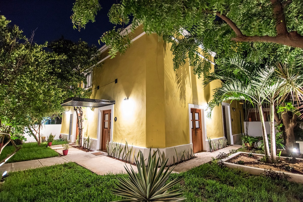 Casa antigua remodelada con una combinación de lo antiguo con lo moderno, está en una colonia tradicional y tranquila, se encuentra entre la avenida cupules y circuito colonia, dos de las principales avenidas de la ciudad, cerca del centro de la ciudad, de paseo de Montejo, donde se puede descansar con total tranquilidad y disfrutar la estancia, cuenta con un amplio jardín y una piscina, cuenta con internet (30mb), smartv 49" en sala, smartv 43” en el cuarto.