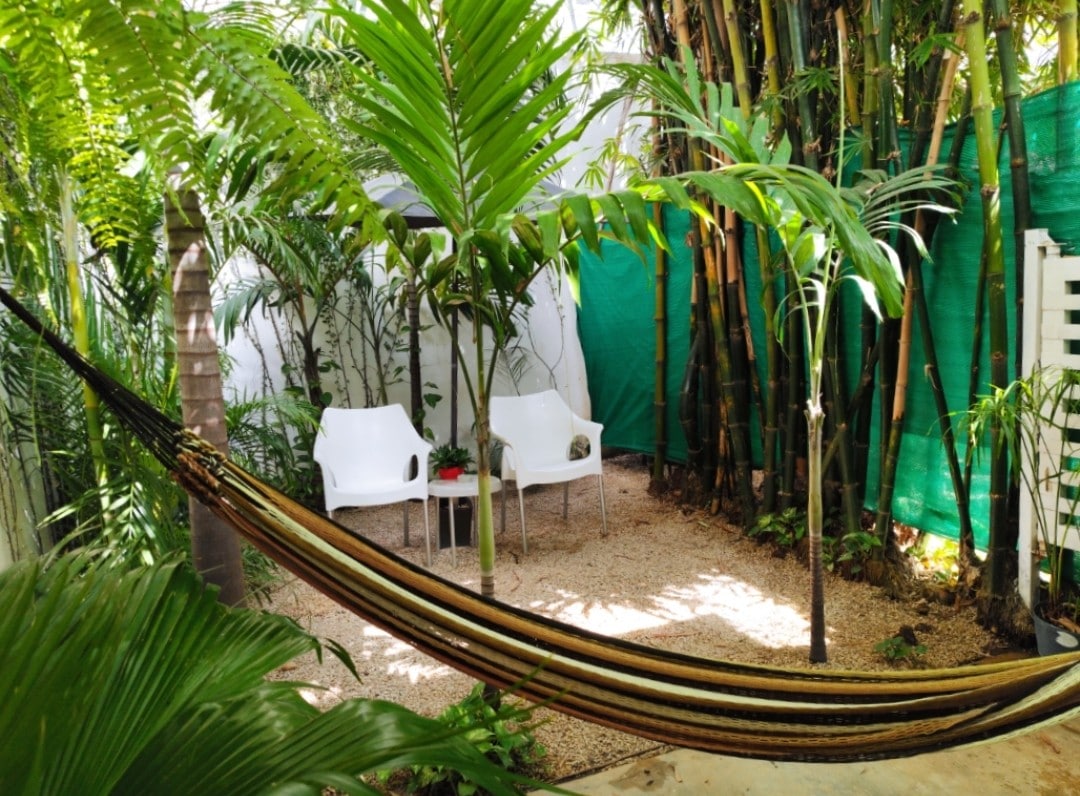 Hermoso alojamiento con entrada independiente y jardín privado que conduce a una cómoda suite con cama queen para dos personas, baño completo y cocina privada. La alberca es el único espacio compartido. Se encuentra en una zona mixta con restaurantes y variedad de tiendas. A 300 metros está la entrada a la Zona Hotelera, donde pasa transporte público hacia la playa, y a 5 minutos la estación ADO, con rutas al aeropuerto y otros destinos turísticos.