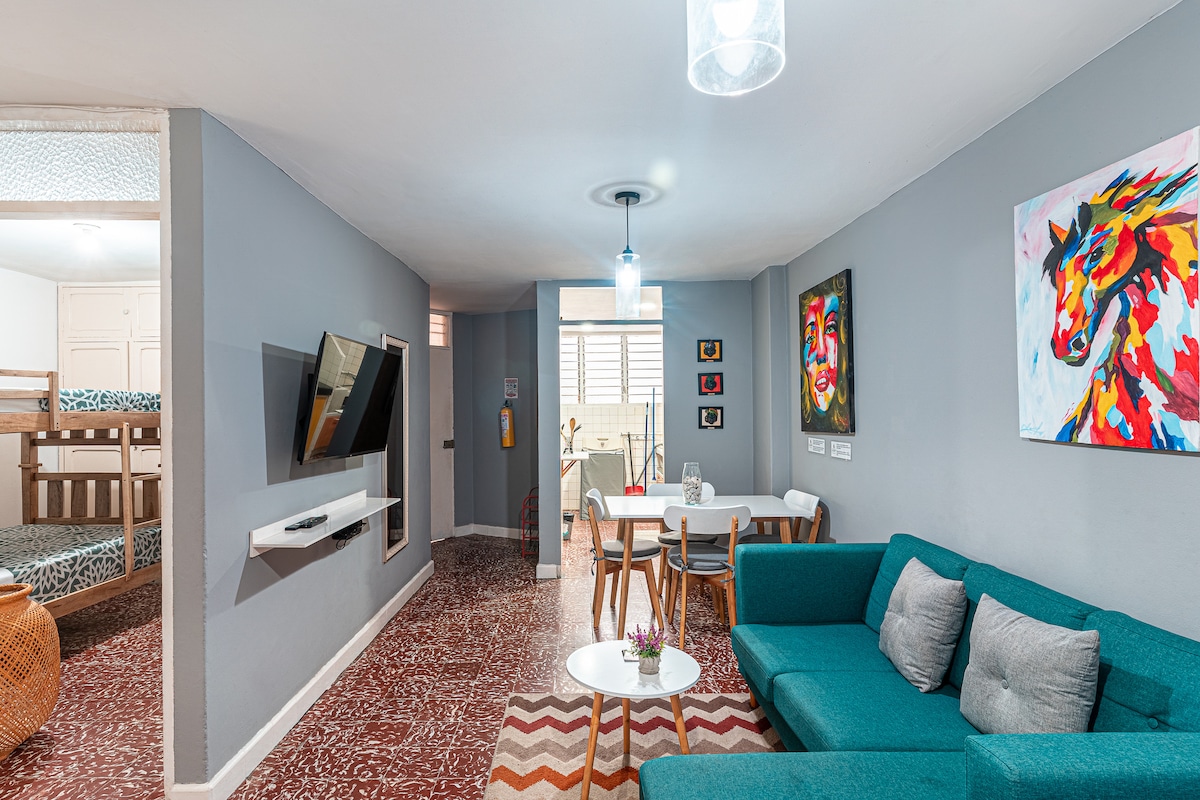 Our place is located in the historic District of Santa Marta. Steps away from the beach, restaurants, cafes, museums, and nightlife. The perfect spot to plan and enjoy daily excursions along the region. FANTASTIC rooftop with a 360° view of the city. You’ll love this place! Suitable for couples, friends, solo adventurers, business travelers, and families. The apartment is suitable for remote work as the internet is fast and it is equipped with a small desk.