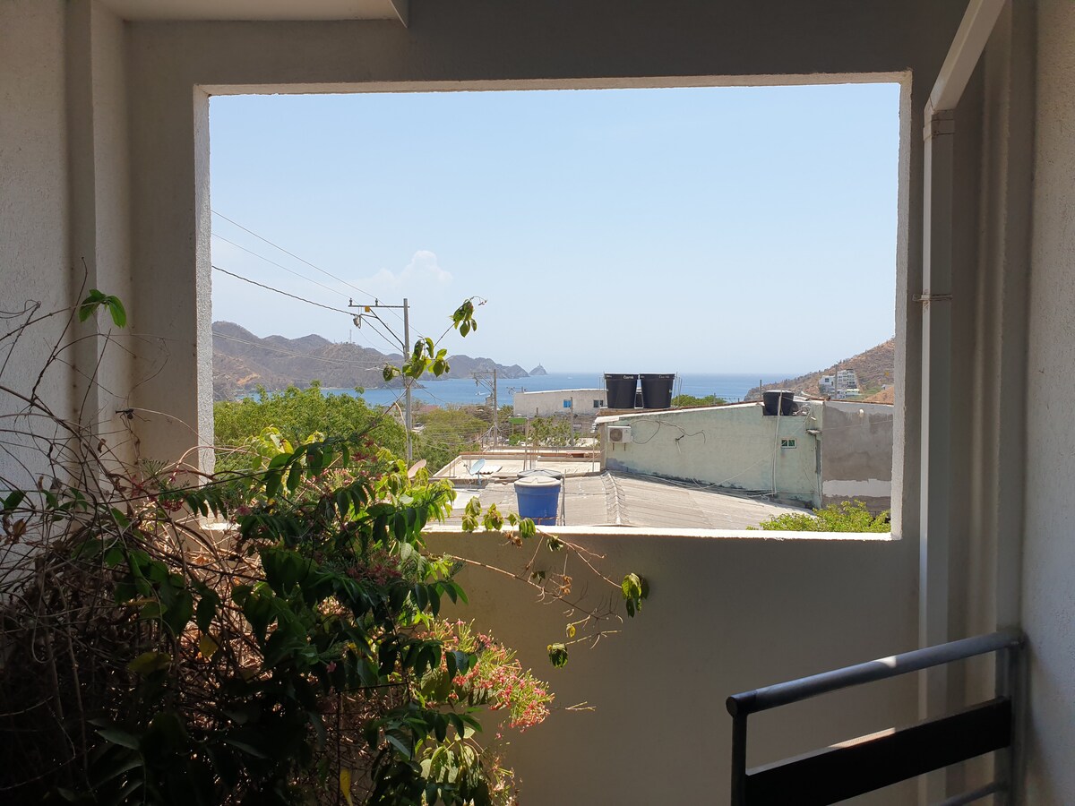 Disfruta tu estadía en Taganga con una maravillosa vista a la bahía rodeado de naturaleza. Apartamento de un espacio en primer piso con baño privado, cocina, sala y aire acondicionado, muy espacioso y super tranquilo, contamos con una terraza común en piso superior con vista. (La habitación no tiene vista directamente al mar) Relájate en este tranquilo lugar lejos del ruido y a 500 metros de la playa, donde puedes disfrutar tu desayuno con una excelente vista al mar.