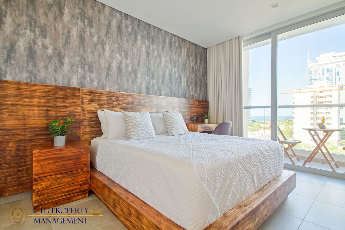 Enjoy the beautiful ocean views from this modern apartment in the 11th floor with all amenities like hot water, AC, beautiful large windows, balcony. The building is modern and rather new. Your parking spot is included. You are right at the beach in the beautiful bay of Santa Martha The building has jacuzzi, swimming pools for adults and children The area is safe & it has restaurants and shops yet is quiet. ENJLOY WELCOME ! We have a new Wi-Fi code as of February 2026: 926719..