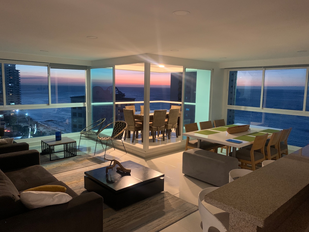 Excelente apartamento en piso 9 con vista al mar, ideal para 1, 2, 3 o hasta 4 huéspedes. Cuenta con 2 dormitorios, living-comedor, cocina equipada y baño en suite. Ofrece servicios como Claro TV, WiFi dedicado y WiFi en todo el edificio, planta eléctrica general, CCTV en áreas comunes, estacionamiento y portería 24/7. Importante: Por disposición de la administración, al momento del registro en recepción se debe abonar $14.000 por concepto de manillas de control y seguridad para los huéspedes.