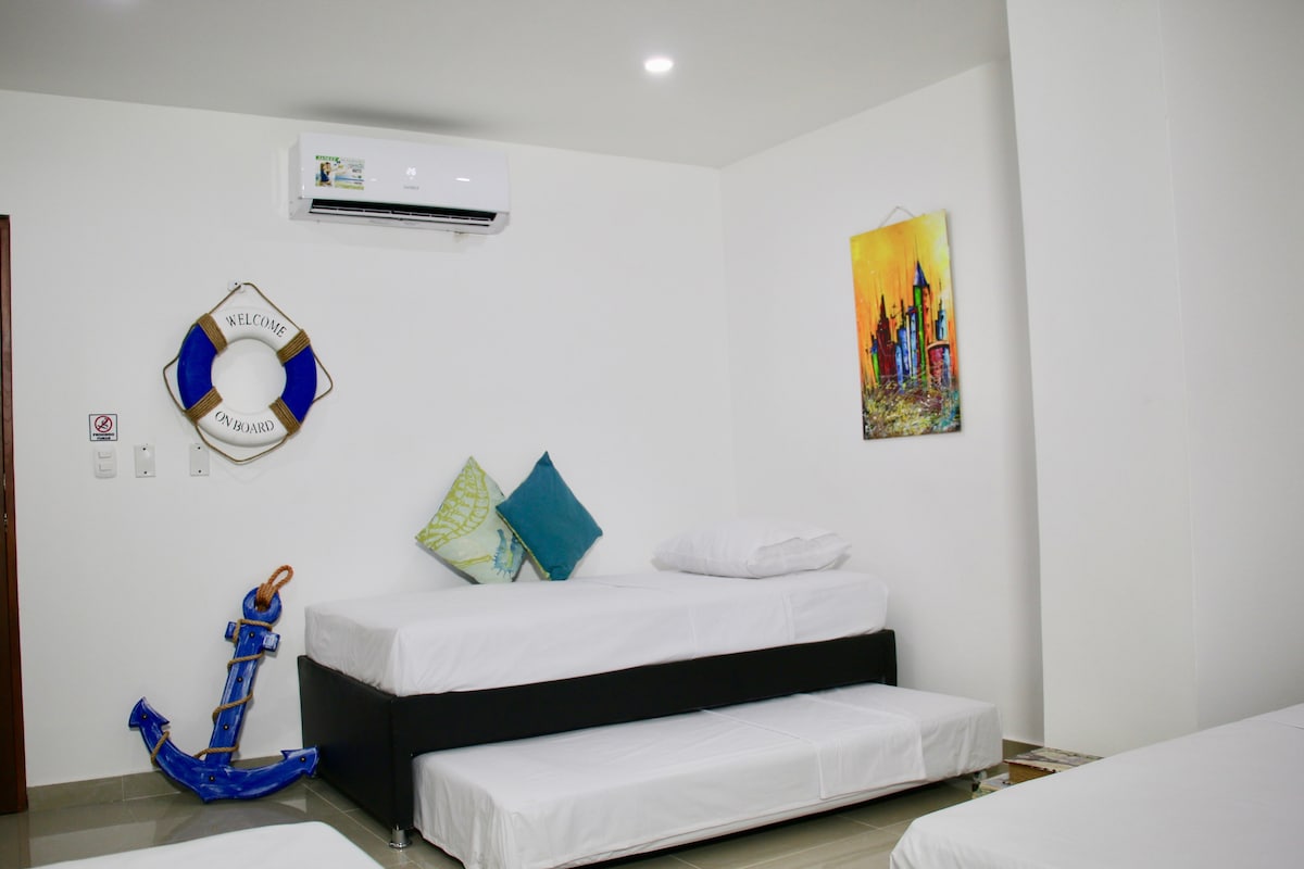 Habitación para amigos o familiares, con baño privado y aire acondicionado tendrás acceso a toda nuestra zona social. Perfecto espacio para disfrutar de unas vacaciones contagiándote de la buena energía de casa Babel, un lugar de hermosos atardeceres. Room for friends or family, with private bathroom and AC you will have access to our entire social area. Perfect space to enjoy a vacation by getting infected with the good energy of the Babel house, a place of beautiful sunsets.