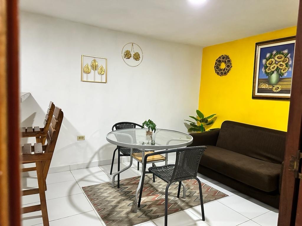 Suite de Trabajo y Relax (piso 15, vista a Cabo Tortuga): Perfecta para quienes necesitan un espacio de trabajo cómodo y una desconexión total. Cuenta con cocina, baño y capacidad para 2 personas, con la opción de añadir una persona extra o dos niños con un colchón inflable. Cerca al Centro Comercial Zazué, (donde encontraras supermercado Carulla y diferentes restaurantes), cruzando la avenida encontraras D1, Ara y una droguería.