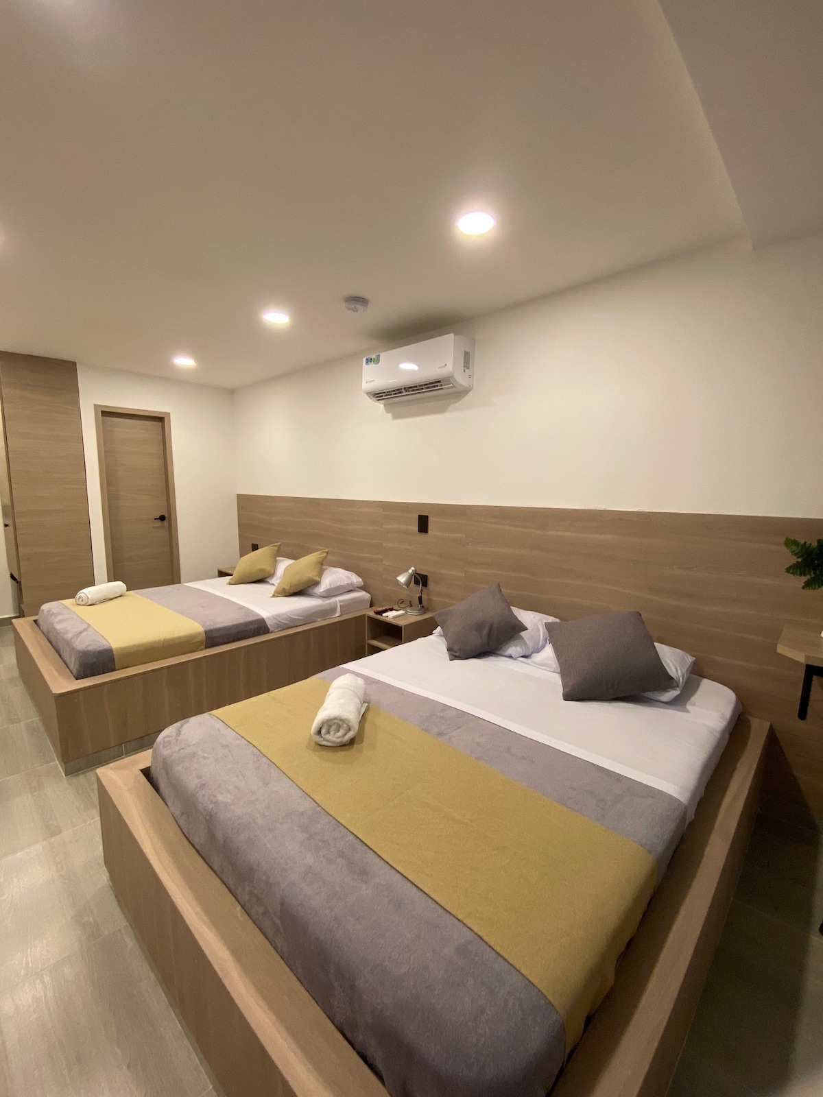 2张双人床,靠近塔甘加海滩,带空调