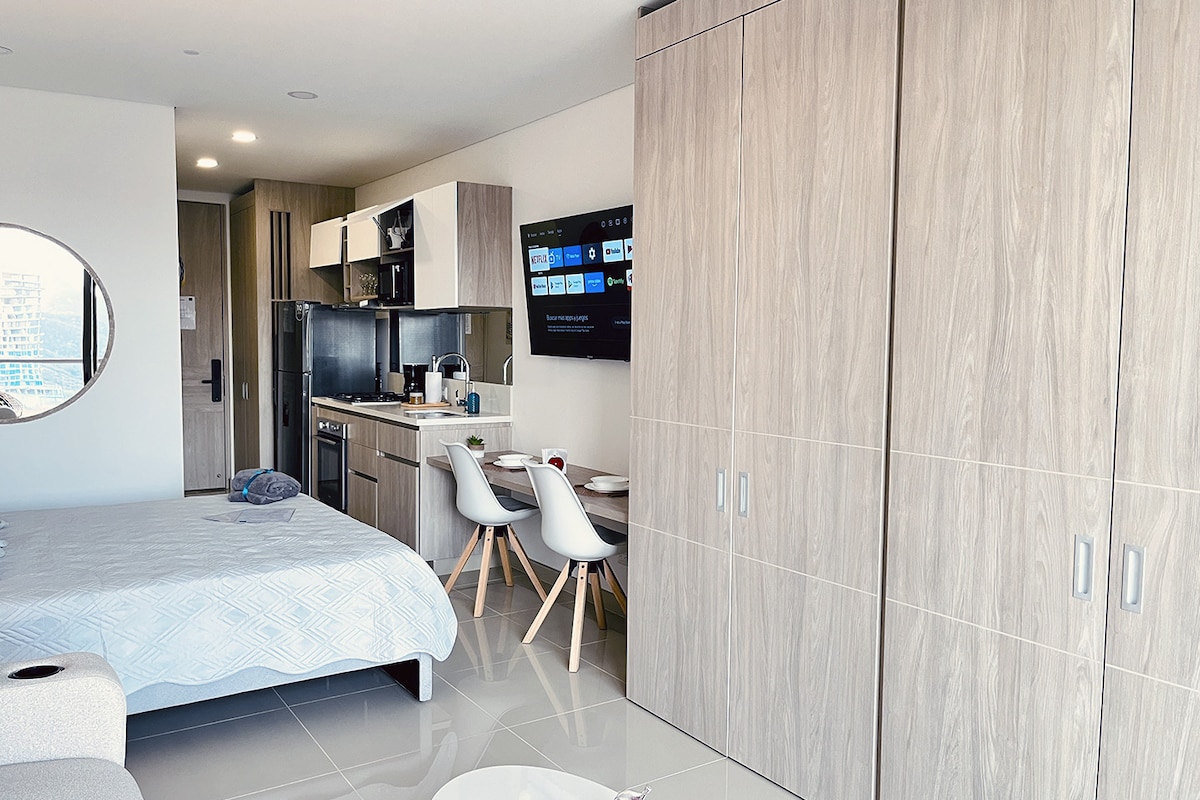 🌅 77m² Oceanfront Loft: Your Paradise Office Wake up to the waves in this spacious 77m² (830 sq ft) loft, perfectly designed for work and relaxation. Exclusivity: Access to a private beach and 2 pools. Remote Work: High-speed Wi-Fi and ocean-front workspace. Comfort: Full AC, equipped kitchen, and balcony with a hammock. Location: Safe area in El Rodadero, steps from cafes, restaurants, supermarkets and 15 min from the airport. Perfect for digital nomads and long-term stays.