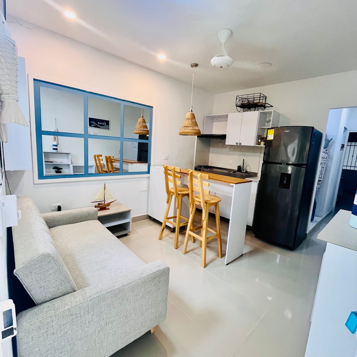 Cómodo e iluminado Apartamento ubicado en edificio antiguo residencial del centro historico de Santa Marta. Cuenta con cocina completamente equipada, aire acondicionado, baño privado, WIFI y TV con Streaming. La ubicación es inmejorable, a 3 minutos caminando de un supermercado Éxito y 5 minutos del parque de los novios y del callejón del correo (zona de restaurantes, bares y discotecas) y cerca de vías principales Un espacio perfecto para hospedarse y conocer el iconico centro de Santa Marta