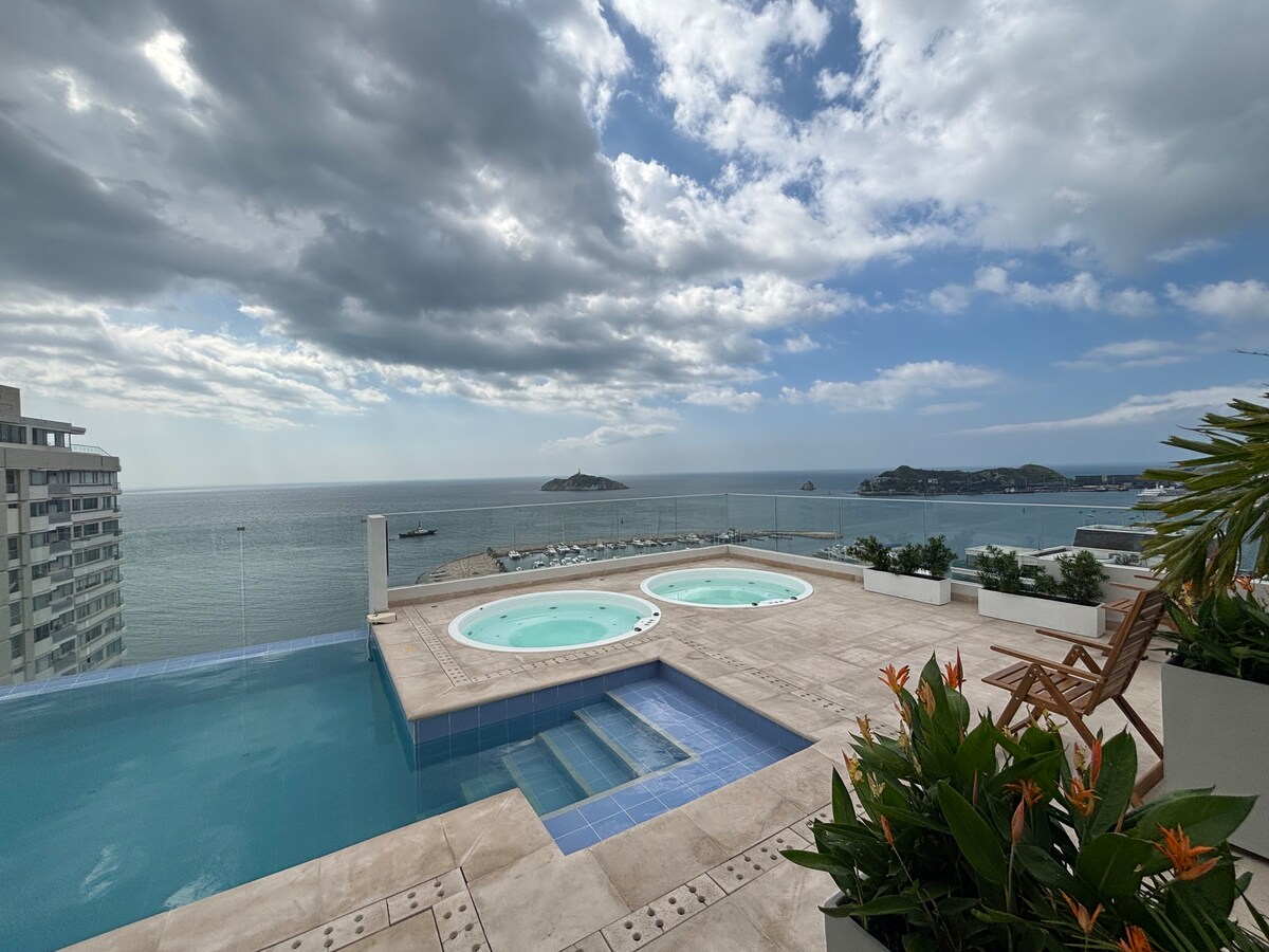 圣玛尔塔海景房,屋顶泳池和按摩浴缸