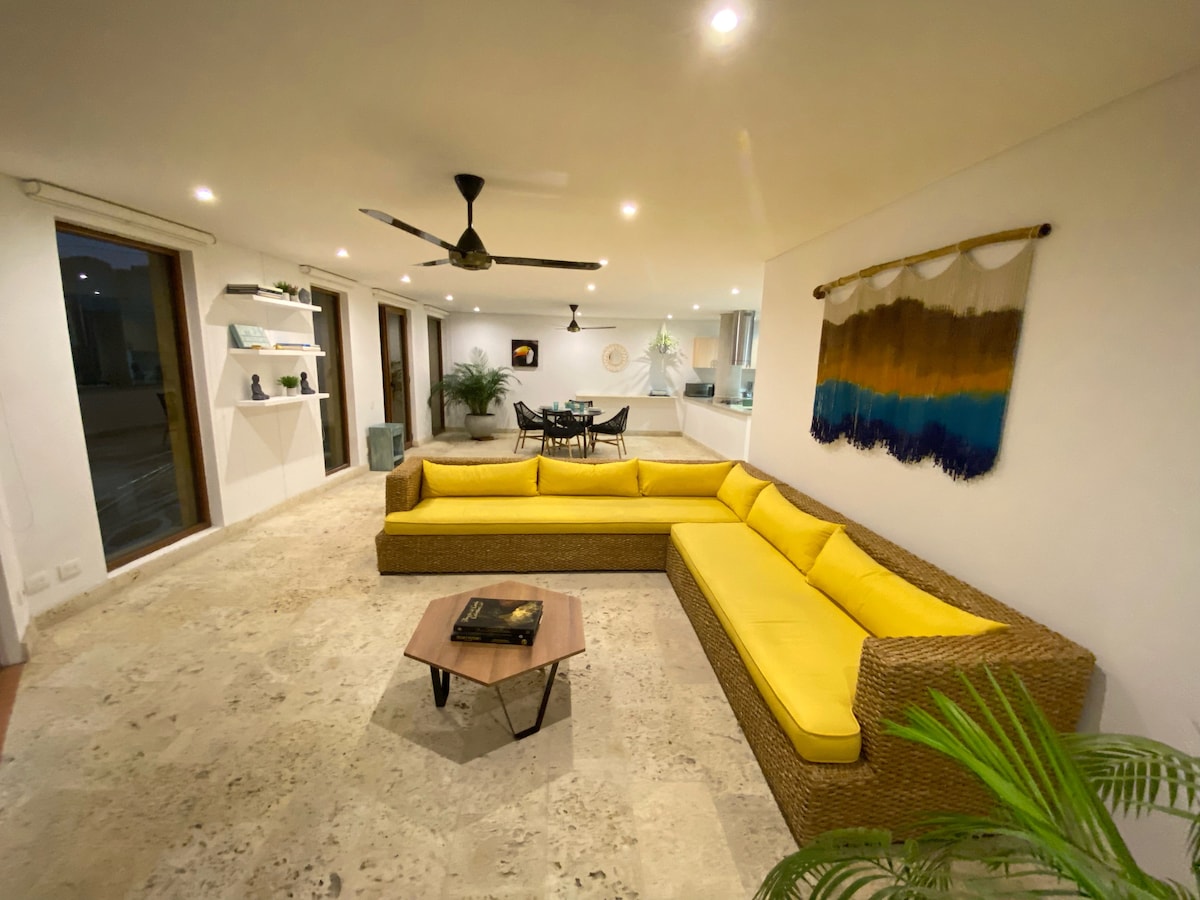 Apartamento ubicado en el edificio más exclusivo del centro histórico de la ciudad de Santa Marta, específicamente en el edificio Casa del Río. En nuestro Apartamento se puede disfrutar de todos los beneficios de estar en esta hermosa ciudad, estar en la bahía más linda de America, atardeceres únicos, estar en el corazón del centro histórico y el privilegio de tener las mejores areas sociales del sector. Nuestros huéspedes podrán disfrutar de este hermoso apartamento totalmente dotado.