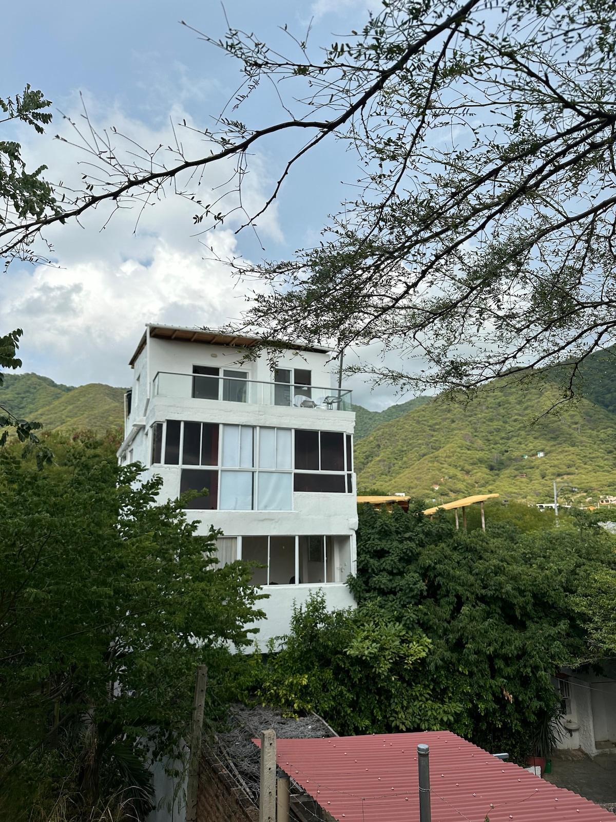 Mansion in El Rodadero with 9 floors for an incredible stay in Santa Marta. Enjoy nature between mountains while being in the city, just 10 min walk from the beach. We have a housekeeper and helps you with cleaning during the week*, and a coworking area with AC. Fiber internet, Netflix, and AC in all rooms. 4 terraces with wine cellar and grill, pool with bar, free parking. No drug parties. Max 2 pets on terraces. Insta: Cabo Roca Casa Boutique.