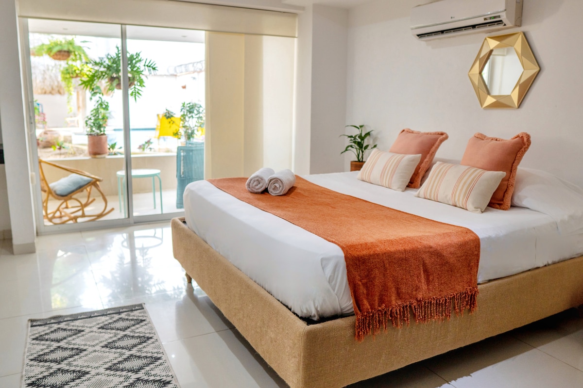 Casa Alma, es un espacio privado ubicado en uno de los barrios más tranquilos de Santa Marta. La gran piscina ubicada en el hermoso jardín interior es un paraíso. Aquí sentirás la tranquilidad del Caribe pero con la gran ventaja de estar dentro de la ciudad y tener a la mano todo lo que necesitas. La playa más cercana está a 10 minutos en carro. IMPORTANTE: el valor de la reserva varía según el tamaño del grupo y así mismo se habilita el número de habitaciones. Capacidad máxima 22 huéspedes.