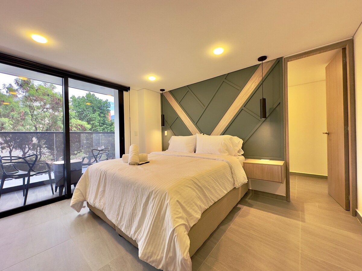 Welcome to your modern top-floor studio in trendy Laureles! Enjoy chic design, relaxing comfort, and a 5-minute walk to top dining and nightlife. This retreat includes 1.5 baths, full kitchen, A/C, in-unit washer/dryer, private + guest parking. Relax with fast fiber internet, Smart TV, and city views from your private balcony. With 24-hour security and spotless standards, peace of mind is assured. Perfect for digital nomads discover the best of Medellín in style and comfort.