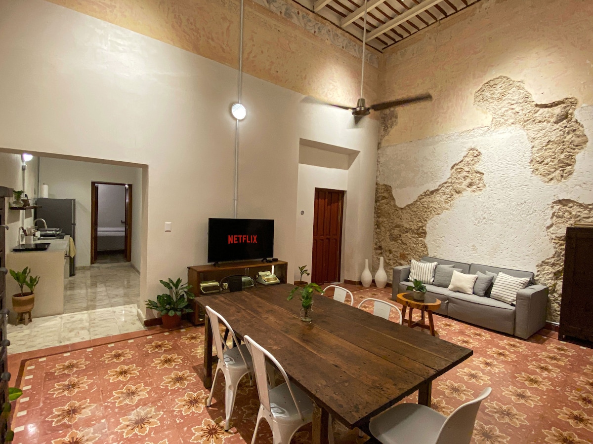 The adjacent construction is complete! We offer our guests FREE PRIVATE PARKING!! It has everything you need: - Fast and uninterrupted Wi-Fi - Air conditioning in all areas - Private pool WALKING DISTANCES 1 minute from Santa Lucía Park 9 minutes from Plaza Grande 6 minutes from the Gastronomic Corridor 15 minutes from La Plancha Park 7 minutes from Paseo de Montejo