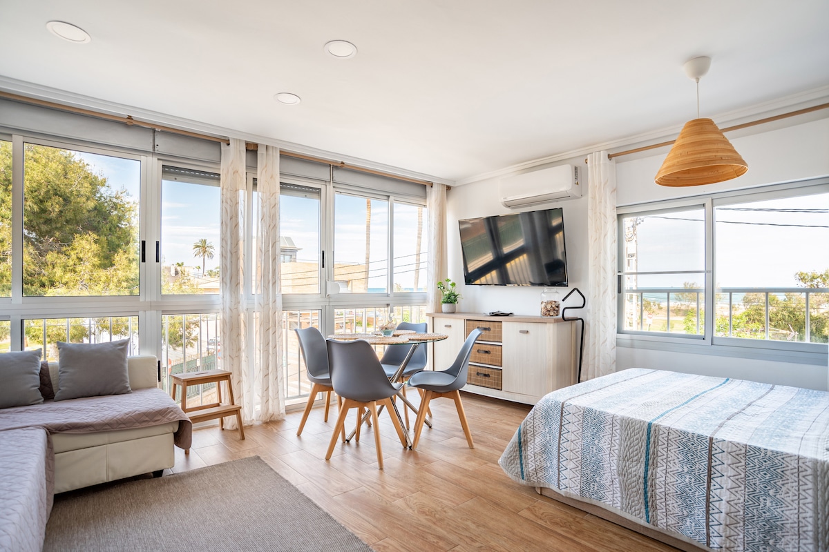 Pasa unos días en nuestro pequeño apartamento frente al mar. Es un espacio abierto, donde no hay habitación. Segundo piso con ascensor y escaleras, recién renovado. Estreno en abril 2023. Hay una cama de matrimonio y un sofá que se convierte en otra cama de matrimonio. Ideal para dos personas, consultar si son más.con un coste adicional de 15 eu persona y noche El alojamiento dispone de todo lo necesario para una estancia cómoda: nevera, utensilios de cocina, toallas de ducha y de playa, etc.