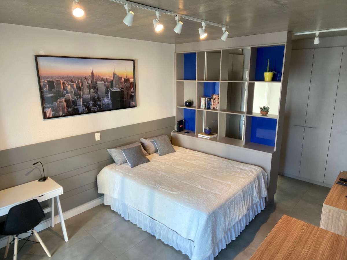 全新单间公寓/露台,靠近伊比拉普埃拉公园/Itaim
