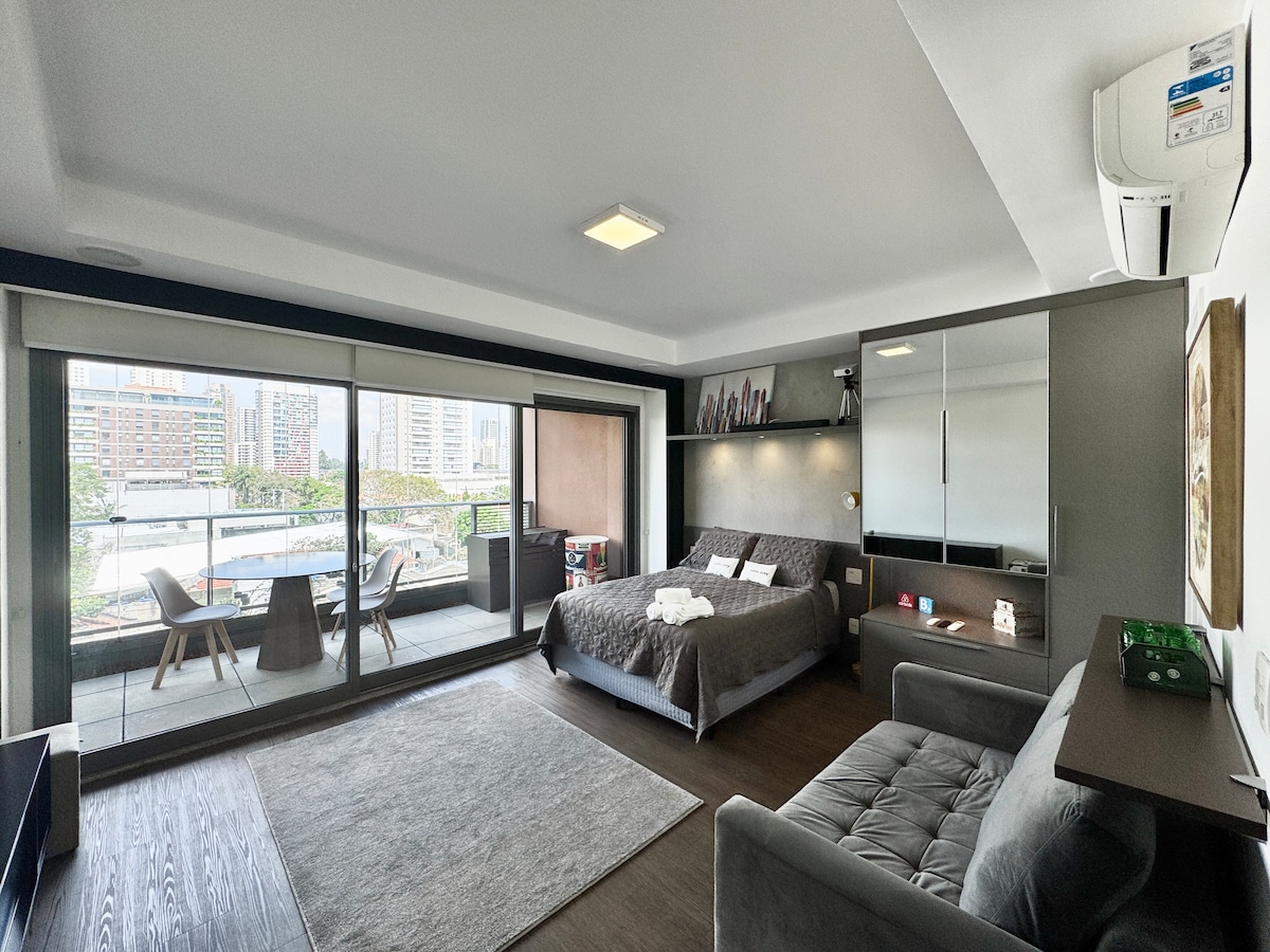 Studio sofisticado e moderno, na melhor localização do Itaim Bibi, em condomínio de luxo novíssimo e moderno próximo ao Parque Ibirapuera e Avenida Faria Lima. Ambiente projetado para ser sua casa em São Paulo. Os Hospedes tem acessos às áreas comuns do condomínio. - Lavanderia, piscina, academia completa, salão de jogos, share space com lounge, sala de reunião, share working, espaço de lazer e recepção 24 horas. - Ar condicionado split - wifi 300 mbps - cozinha completa - cama mesa e banho