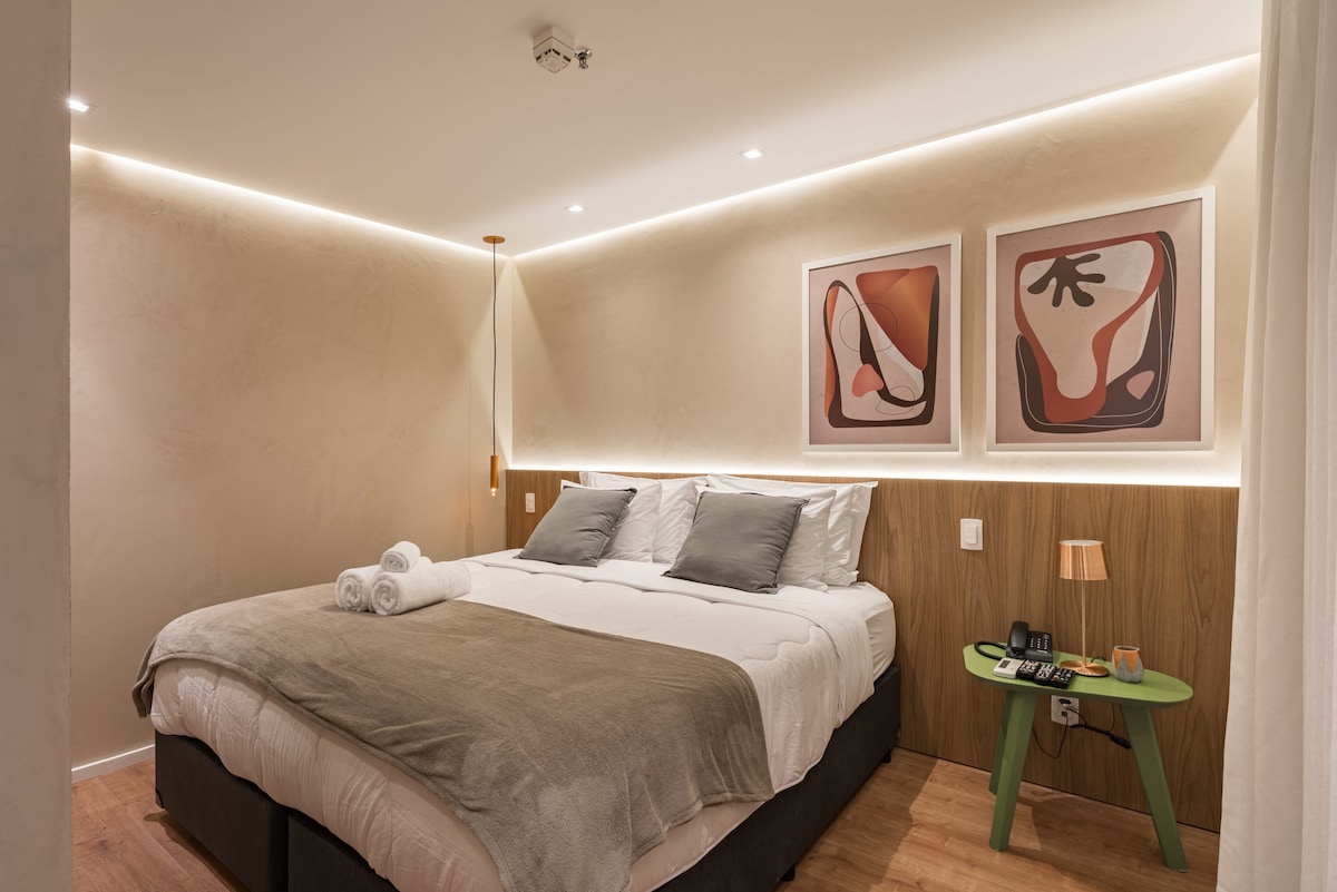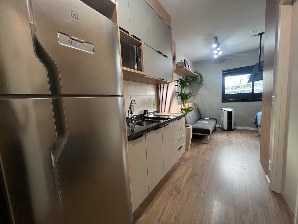 Relax in the best location of São Paulo, between Jardins and Pinheiros. This newly opened studio is a 5-minute walk to the Oscar Freire subway station, in a new building with all the infrastructure for a quiet and comfortable stay. It is on top of a bakery with artisan bread and across the street from a supermarket. The building has coworking and coliving space, laundry room, gym, rooftop pool, and a 24-hour doorkeeper. Wi-Fi 450Mbps.