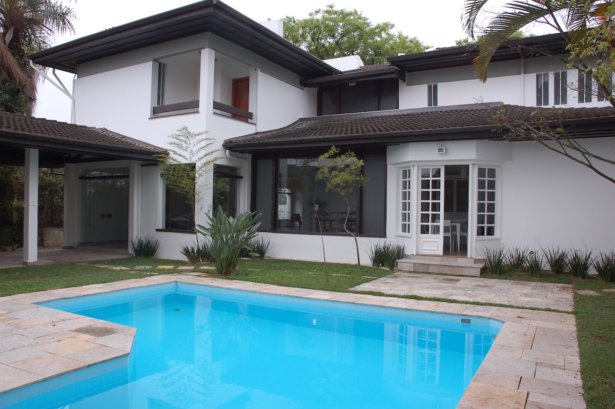Lovely Mansion in SP! Enjoy your stay in São Paulo in this luxurious home, with a beautiful garden and swimming pool. Go into the town easily and get out of the chaotic center in a few minutes! 15 minutes away from Av Faria Lima and Av Rebouças, 5 minutes to Hospital Einstein and São Luis, Governor's Palace and Bandeirantes TV Network.