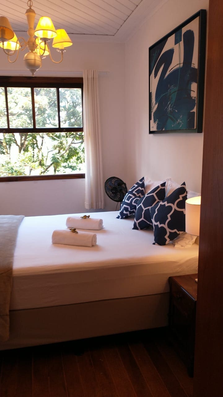 Casa silenciosa para quem quer tranquilidade e sossego em bairro verde e calmo. Bela arquitetura, bem localizada. 5 quartos, boas camas, 6 banheiros com ótimos chuveiros. Grande cozinha, sala de tv, sala de lareira. Terraços e jardins. Não podemos fazer festas nem eventos, pedimos cuidado com barulhos de todas as formas de dia e de noite. Beautiful house, nice architecture, well located. 5 Cozy bedrooms, nice beds, good baths and showers. 2 Living rooms, a big kitchen. Silence day and night.