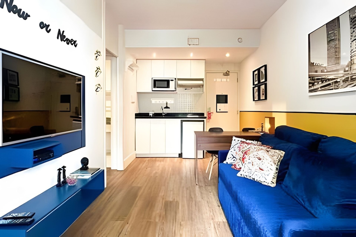 We renovated NYC BERRINI following the success of our One Eleven apartment, Vila Olímpia. Modern duplex on R. Sansão Alves dos Santos, 56, 13th, with a great view of the Pinheiros River. Ideal for those seeking comfort in São Paulo. Guests rate the experience above average! Amenities: Queen bed, sofa bed, 55" Smart TV with Alexa, 500 Mbps Wi-Fi, air conditioning, closets, 2 minibars, Illy coffee machine, and daily housekeeping. Includes pool, sauna, and is near restaurants, shops, and transport.