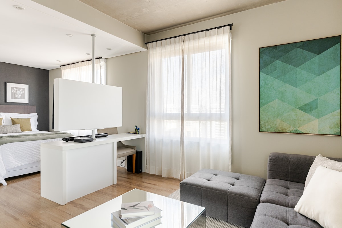 Our newly renovated apartment in the heart of trendy Jardins is sure to impress with its sleek modern design, comfortable amenities, and prime location. Located in a charming mid-century building, you’ll be just steps away from the best dining, shopping, and entertainment in São Paulo. Whether you’re looking to relax or be productive, this apartment has everything you need for a truly enjoyable stay, including a very comfortable workspace, and very quiet bedrooms.