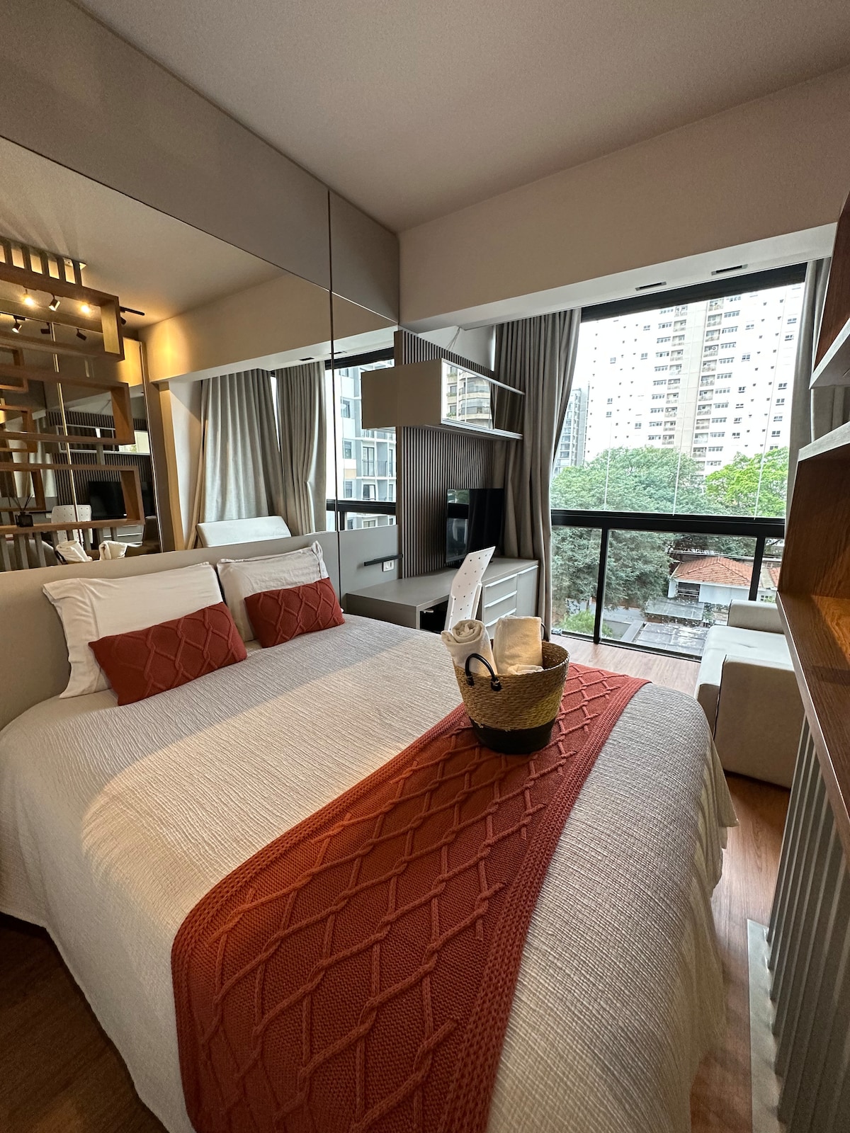 We renovated NYC BERRINI following the success of our One Eleven apartment, Vila Olímpia. Modern duplex on R. Sansão Alves dos Santos, 56, 13th, with a great view of the Pinheiros River. Ideal for those seeking comfort in São Paulo. Guests rate the experience above average! Amenities: Queen bed, sofa bed, 55" Smart TV with Alexa, 500 Mbps Wi-Fi, air conditioning, closets, 2 minibars, Illy coffee machine, and daily housekeeping. Includes pool, sauna, and is near restaurants, shops, and transport.