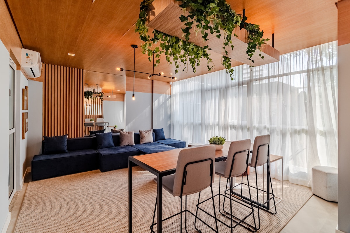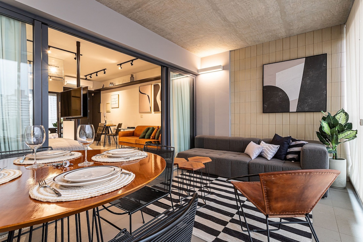 Venha curtir São Paulo em um apartamento que é o sonho de consumo para quem AMA conforto, modernidade, sofisticação, e que não abre mão de uma excelente localização para caminhar ou se deslocar com facilidade. A decoração é bem clean-chic em madeira, mármore, cimento queimado, e há elementos de diversos lugares do mundo que visitamos.