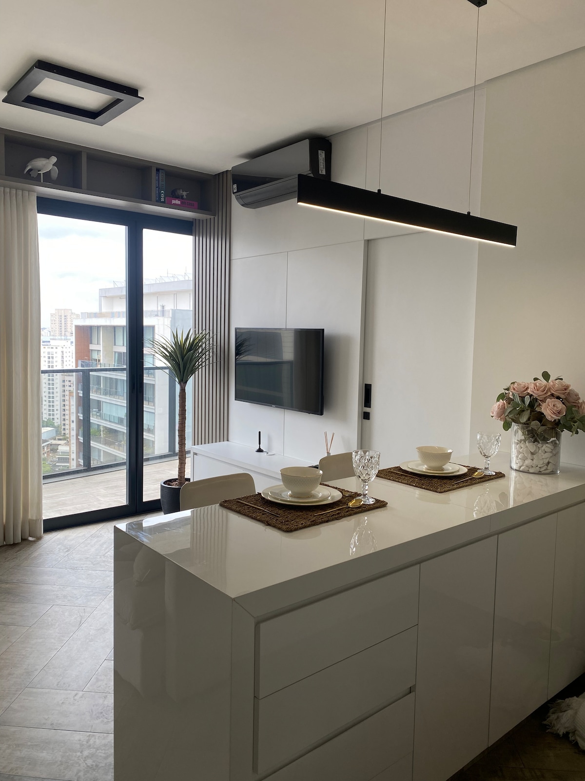 Maravilhoso apto. a poucos metros da Av. Brigadeiro Faria Lima. Projeto concebido por João Armentano, com móveis Ornare e decoração exclusiva. Condomínio FL Residence com estrutura completa, incluindo academia, piscina com raia e linda vista para o centro financeiro de São Paulo (localizadas na cobertura), 2 ótimas opções gastronômicas no térreo. Vaga em garagem coberta inclusa mediante pagamento de taxa de R$ 60,00 (valor da Tag por período). Andar alto (penúltimo). Limpeza inclusa na diária.