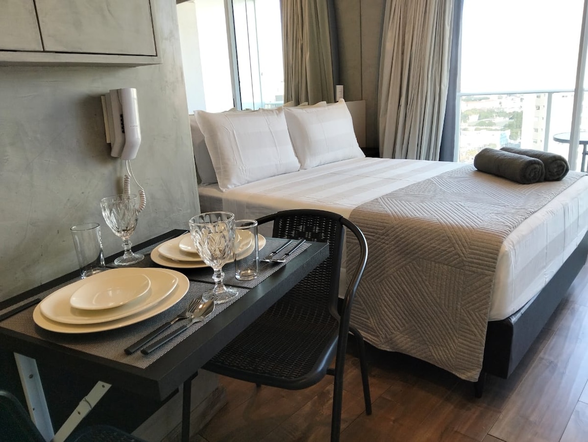 平均评分 4.9 分(满分 5 分),共 78 条评价4.9 (78)现代单间公寓+空调+游泳池+屋顶