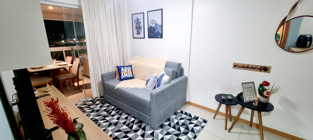 No moderno Condomínio Smart Convenções, esse apartamento possui: ar condicionado em todo o ambiente, varanda privativa, smart tv, wi-fi, piscina e academia no rooftop + 1 vaga de garagem Ideal para até 2 pessoas, roupa de cama e toalhas de banho são fornecidas O condomínio ainda conta com: coworking, portaria 24h sala de reunião e lavanderia A localização é maravilhosa, o prédio está entre um supermercado e um posto de gasolina com loja de conveniência e farmácia (um minuto de caminhada)