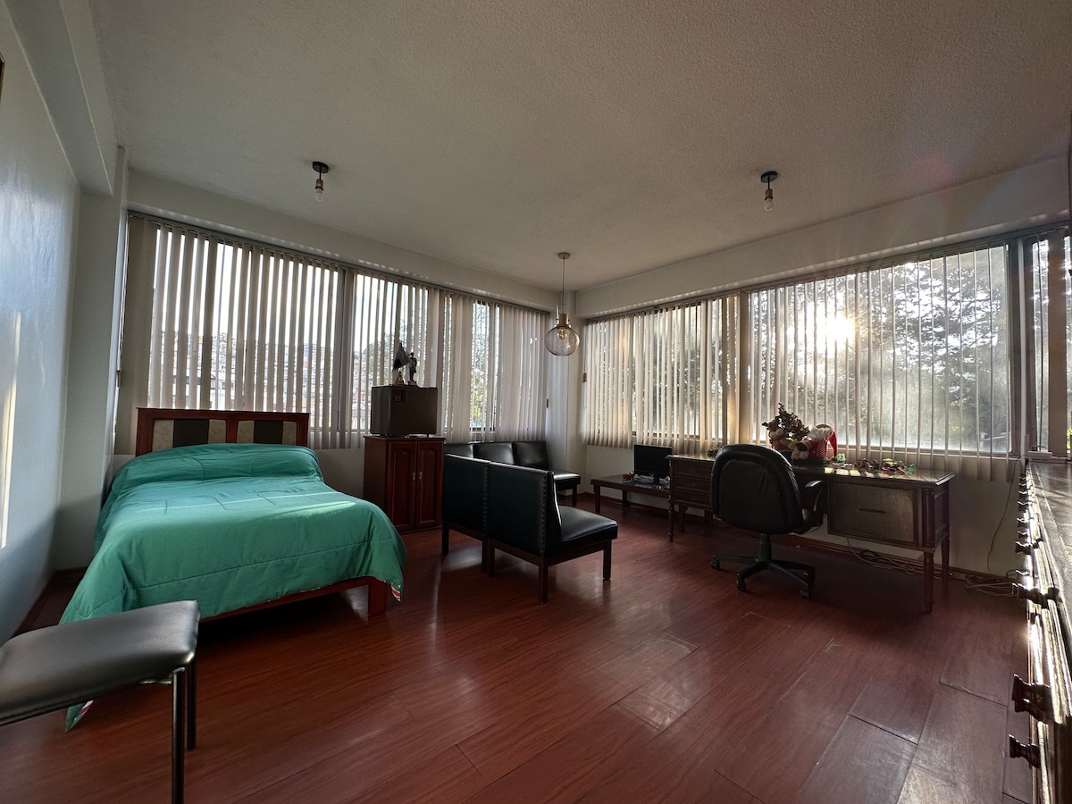 Suite located in the Mariscal area, on the fifth floor of the Monarch building that has a security guard. Due to the location it has a beautiful view of the mountains (see photos).The suite is private, has Wi-Fi, television LG, a king size bed, two sofa beds, a private bathroom with hot water, balcony and fully equipped kitchen. The suite keys will be delivered with a tag for principal entry. Aditional has a internal parking. Welcome to Quito and enjoy your stay in the best area of the capital.
