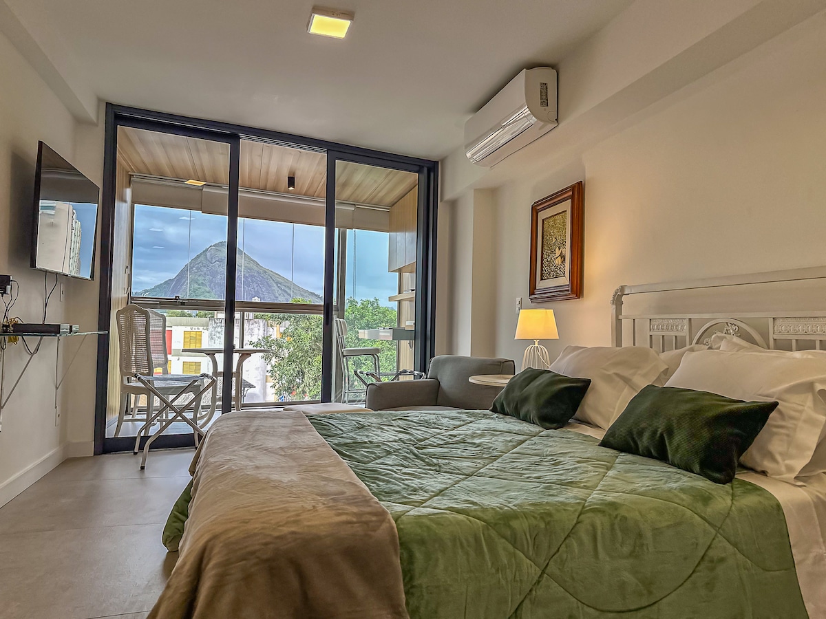 Studio 124 is a charming and complete refuge with a view of Joatinga beach and the good energy of the Pedra da Gávea waterfall in the background. It is a delightful place amidst nature with private access to the beach. Peace and beauty in an exclusive and quiet area, but close to the South Zone and Barra. Perfect for enjoying, relaxing, and working, without giving up on everything the city of Rio has to offer.