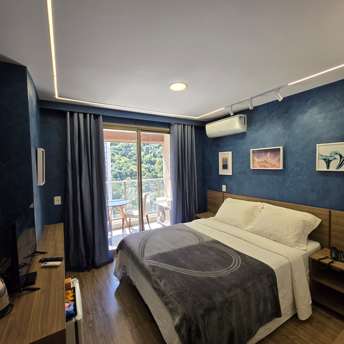 Suíte particular, independente, bem-localizada, confortável e com ótimo custo-benefício. *Não é hotel* Próximo ao Riocentro, Parque Olímpico (Rock In Rio), Farmasi Arena, Qualistage, Shoppings, Parques e Praias - SmartTV 50” - Ar condicionado - Cafeteira - Microondas - Varanda - Estacionamento privativo - Academia - Portaria 24hrs O condomínio também possui com pagamento a parte: Salão de beleza Lavanderia Aluguel carro Carregador de carro elétrico Lanchonete Mercadinho 24hrs