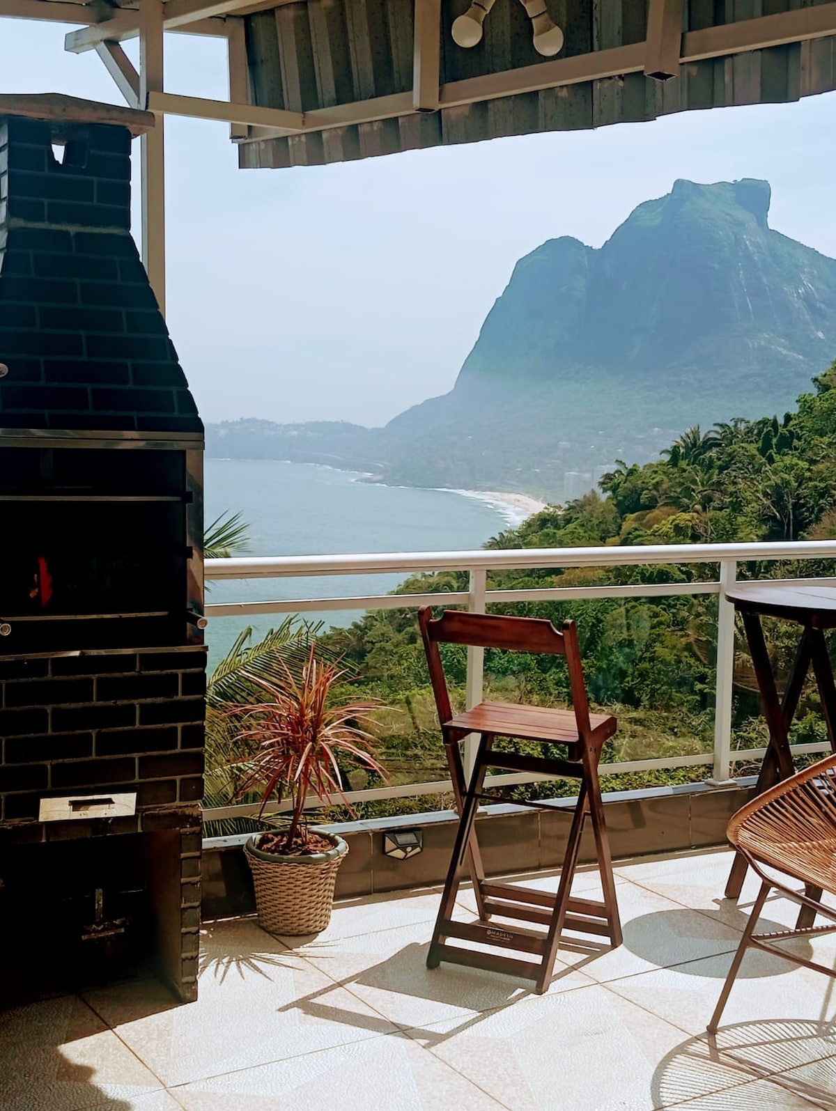 Vista panorâmica 160⁰ para o mar! Nascer do sol em frente a janela. Ótima luminosidade natural. Ventilada. Cortina blackout. Fácil acesso aos transportes. Parte baixa da comunidade do Vidigal. Está a 8 minutos a pé da praia do Vidigal, e de carro, a 5 e 8 minutos das praias do Leblon e Ipanema. Ciclovia/Av. Niemeyer em frente da casa. Cama casal, colchão solteiro, rede. Cozinha equipada: eletrodomésticos e utensílios para cozinhar. Ar condicionado. Smart TV check-in: a partir 14h check-out: 11h